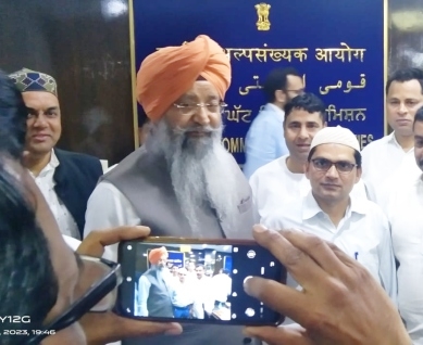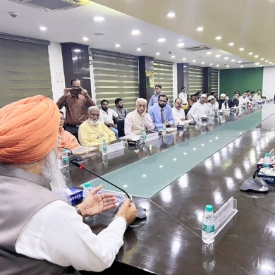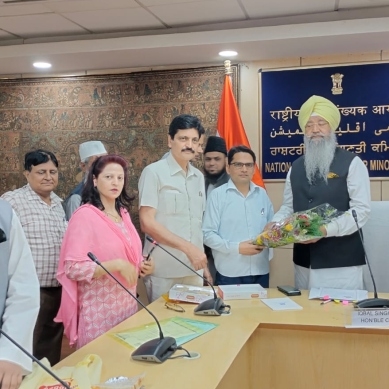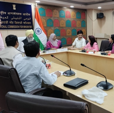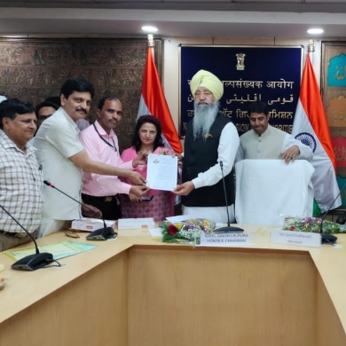 Mohd Riyaz (Member Advisory Panel NCM), Dr. M. Ajaz Ansari & Team in a Meeting with Shri Iqbal Singh Lalpura Chairman National Commission for Minorities, Govt.of India